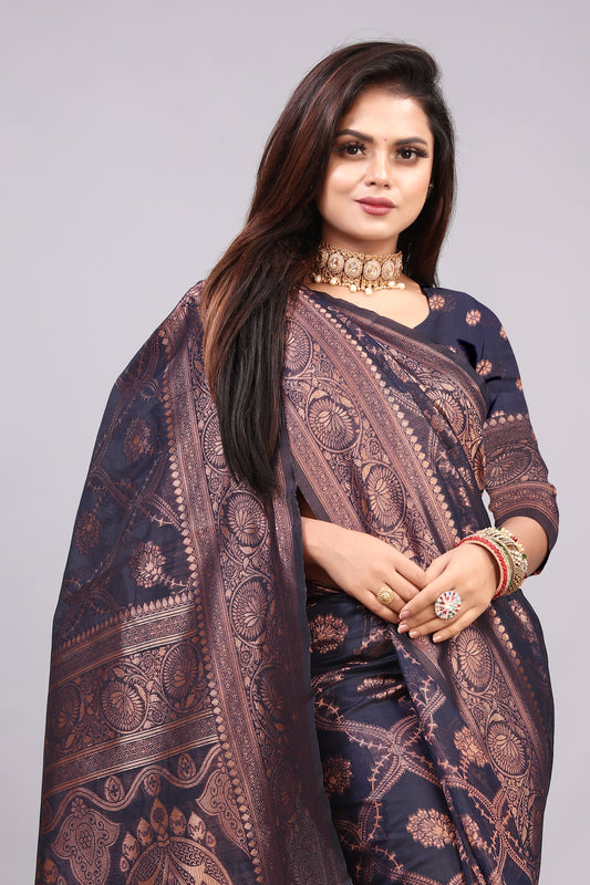 Delightful Exclusive Attractive Designer Bollywood Saree For Women Soft Lichi Silk saree with Rich Pallu & Meenakari with Weaving Border ( Rapair Leriya 02 - Nevy Blue )