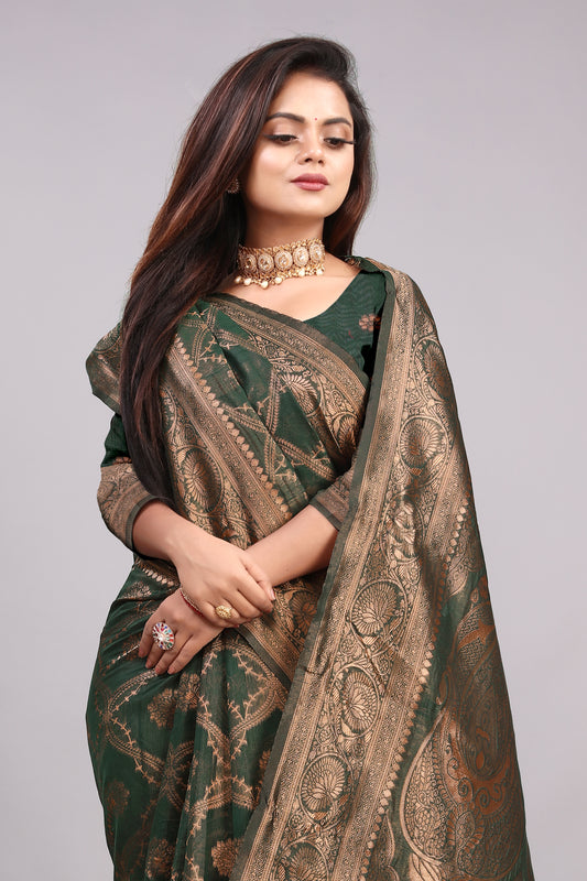 Delightful Exclusive Attractive Designer Bollywood Saree For Women Soft Lichi Silk saree with Rich Pallu & Meenakari with Weaving Border ( Rapair Leriya 02 - Dark Green )